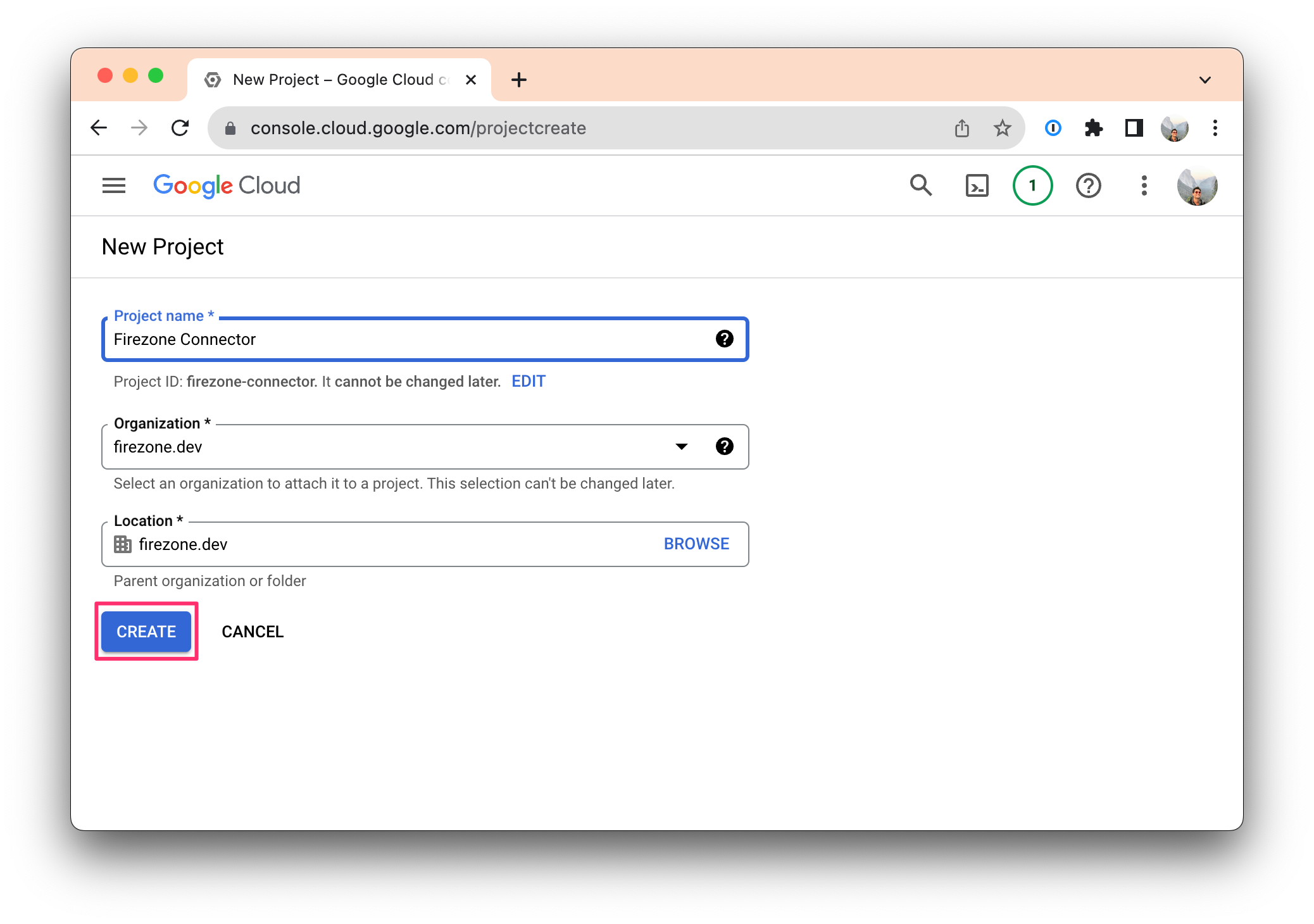 You may skip this step and proceed directly to Step 2 if you already have a GCP project you'd like to use with Firezone.