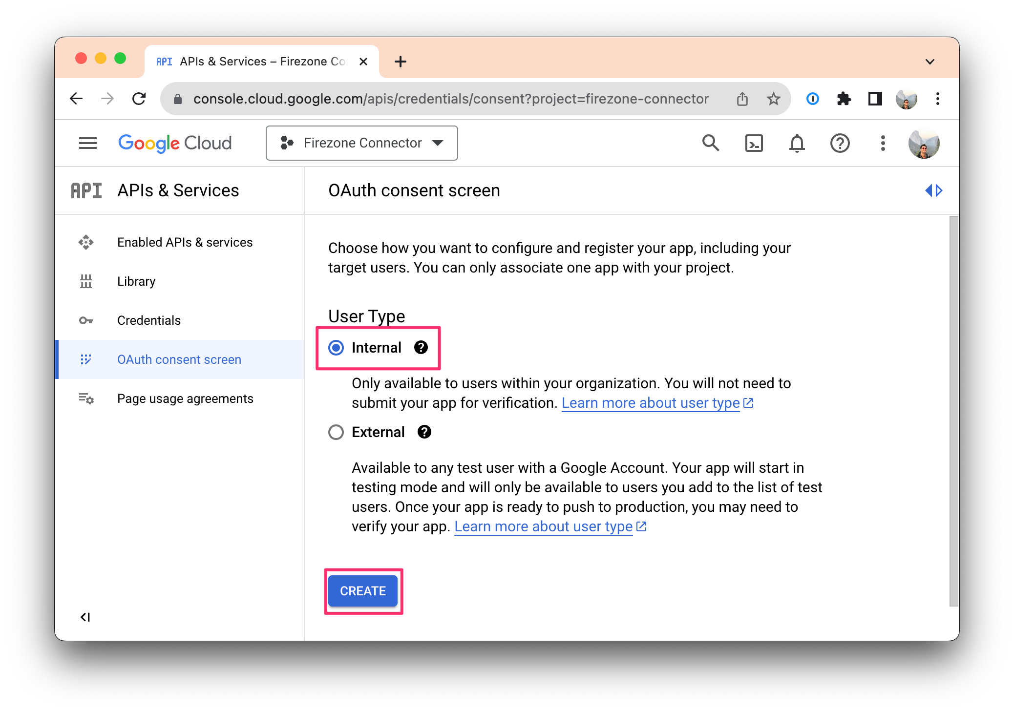 Next, you'll need to add OAuth credentials to allow Firezone to connect to your Google Workspace account.