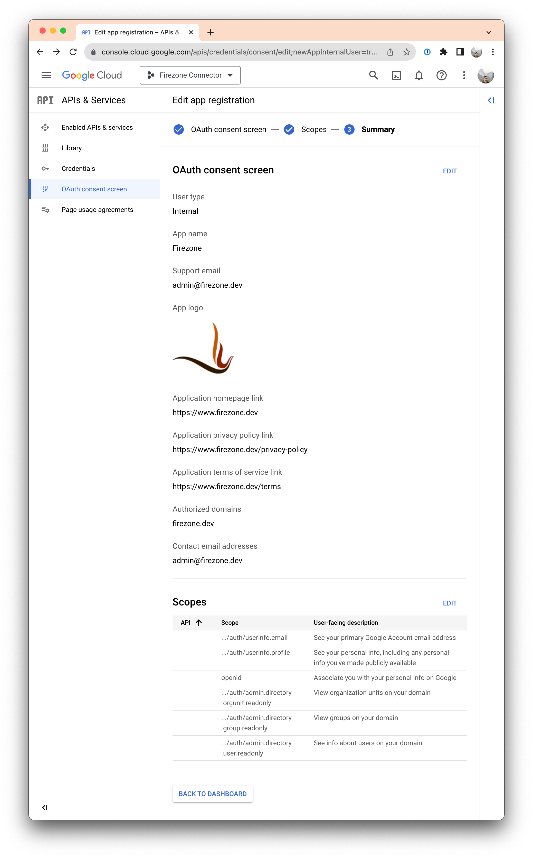 This is used to allow Firezone to read users, groups and organizational units from your Google Workspace account.